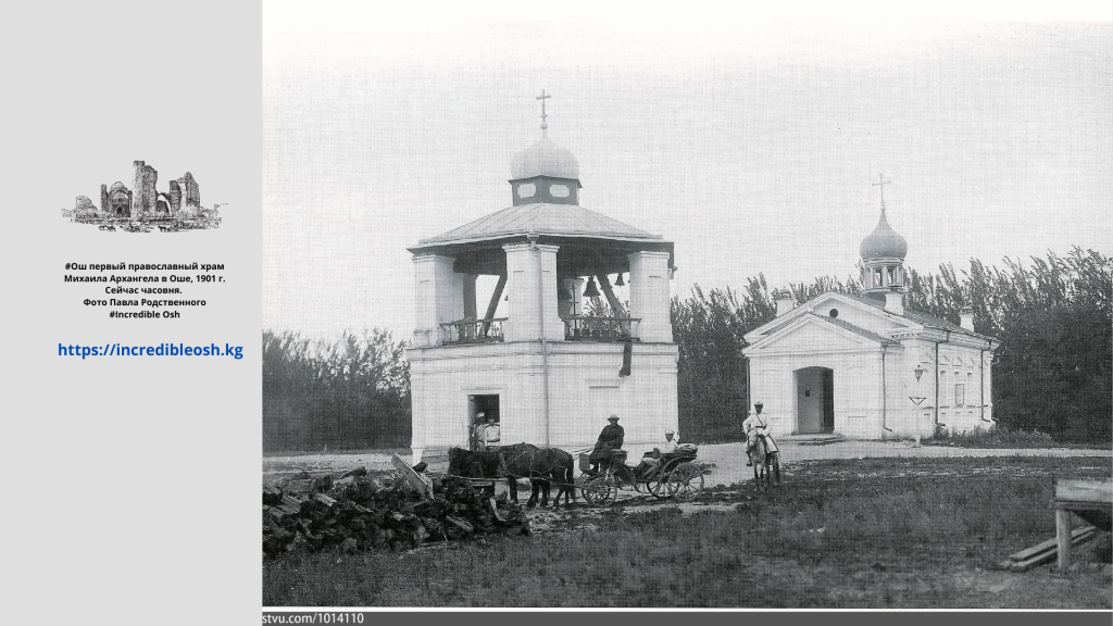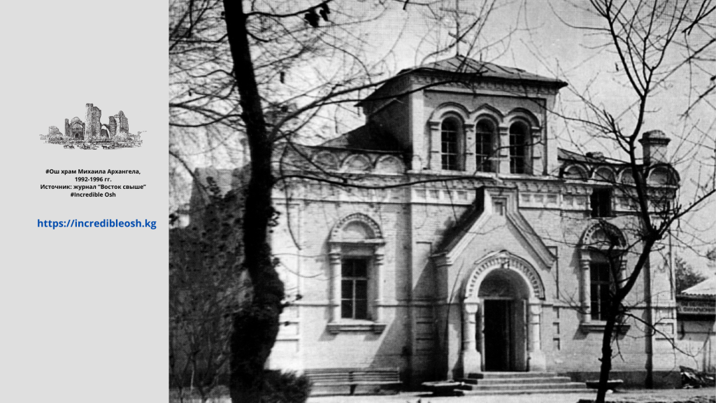 9 ноября, 2025Михайло-Архангельский храм – единственный памятник классической русской православной архитектуры в Оше. На его месте раньше стояла временная полковая церковь 1877 года, спустя два года 7 ноября 1879 году с благословения Преосвященного Александра, епископа Туркестанского она была освящена во имя Михаила Архангела. Первыми ее прихожанами были солдаты и офицеры 4-го Туркестанского батальона, базировавшегося в Оше, уездные чиновники и их семьи.