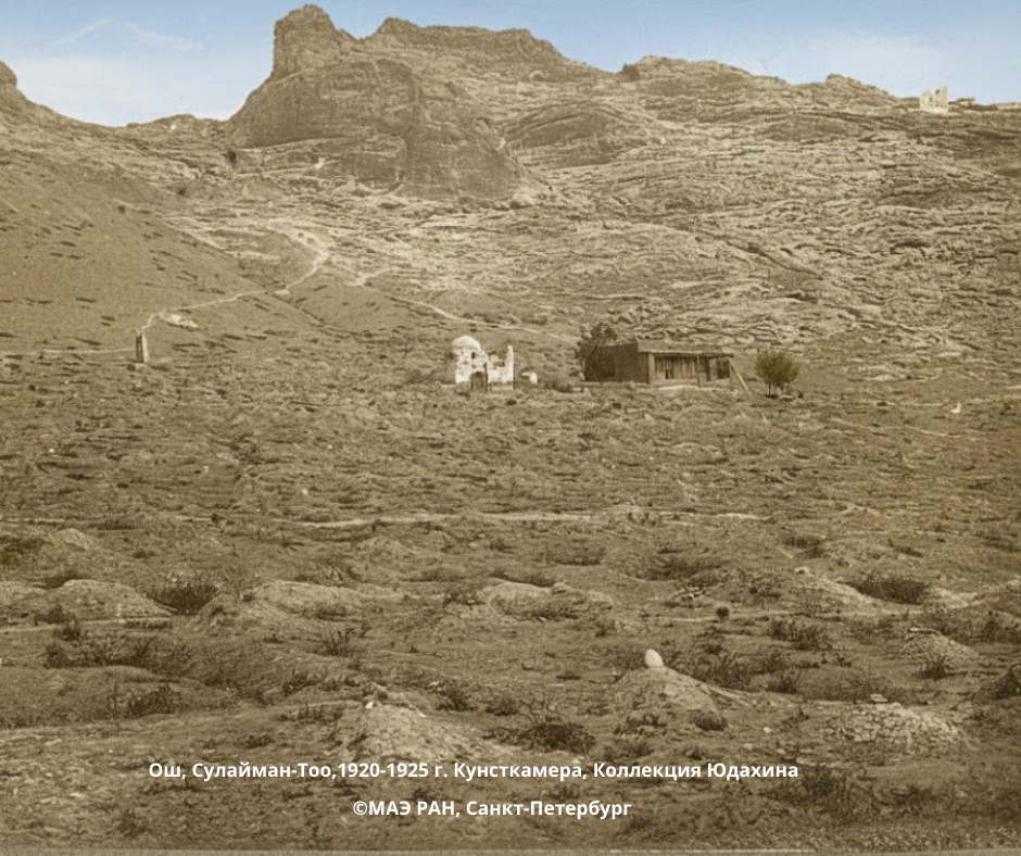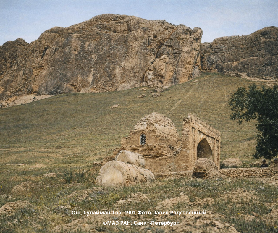 Фотографии, сделанные в начале XX века поручиком Павлом Родственным, адъютантом командующего войсками Туркестанского военного округа, открывают нам забытый облик старого Оша. На одном из снимков запечатлены два мазара, расположенные у подножия Сулайман-Тоо. Эти архитектурные объекты не просто памятники старины, сведения о них содержатся в «Мусульманском сказании об Оше», записанном востоковедом и тюркологом Львом Зиминым. Ниже приводится оригинальный отрывок без изменений: